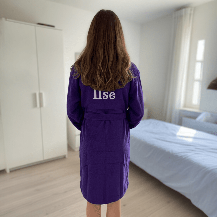 Deze badjas is voorzien van een klassieke sjaalkraag en een riem voor eenvoudige sluiting. Daarnaast is het materiaal stevig en lichtgewicht, met een dichtheid van 385–400 g/m². Hierdoor voelt de badjas luxueus aan, zonder te zwaar te zijn. Perfect voor na het douchen, op koude ochtenden of tijdens ontspanning thuis.