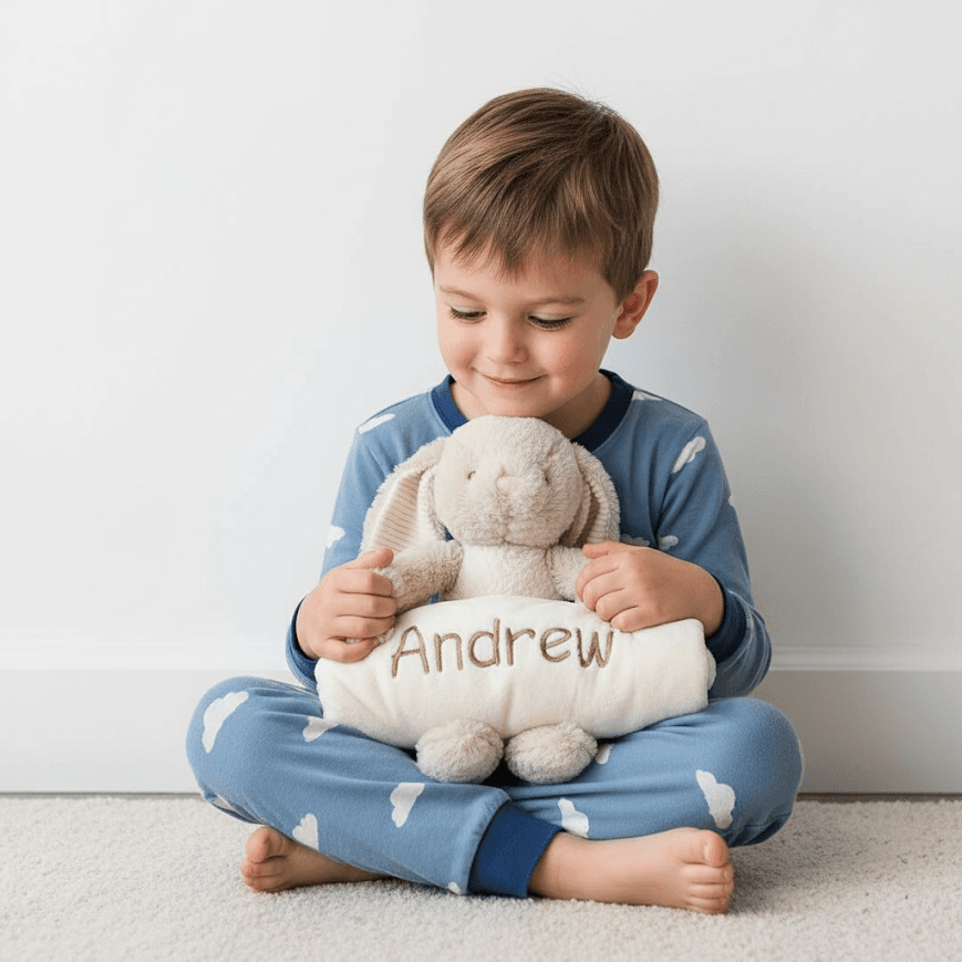 Het bijgeleverde crèmekleurige microfleece dekentje is extra zacht en afgewerkt met een elegant contrasterend stiksel langs de randen. Perfect voor dutjes, onderweg of als vertrouwd knuffeldoekje. Het geheel wordt geleverd in een stijlvol geschenkzakje met crèmekleurig lint, waardoor het ideaal is als kraamcadeau, verjaardagscadeau of gewoon om iemand mee te verrassen.